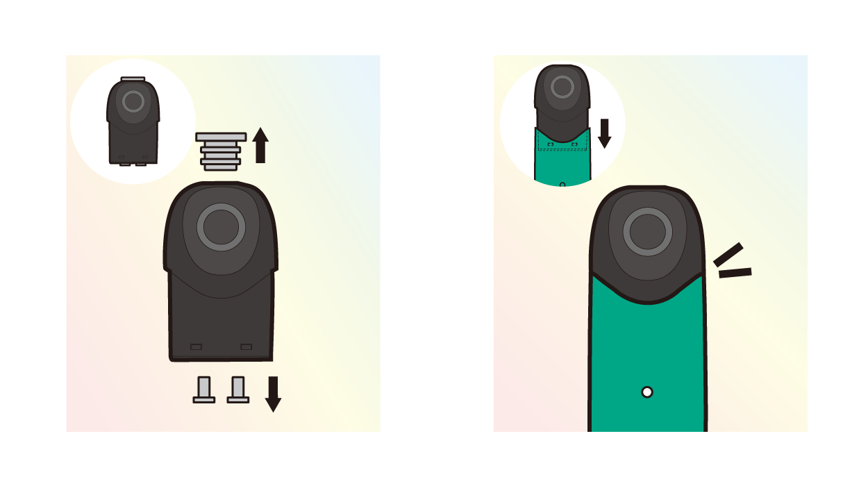 1.カトマイザーを取出し、両端のシリコンキャップを外し、1分間放置するか、または軽く振る。
