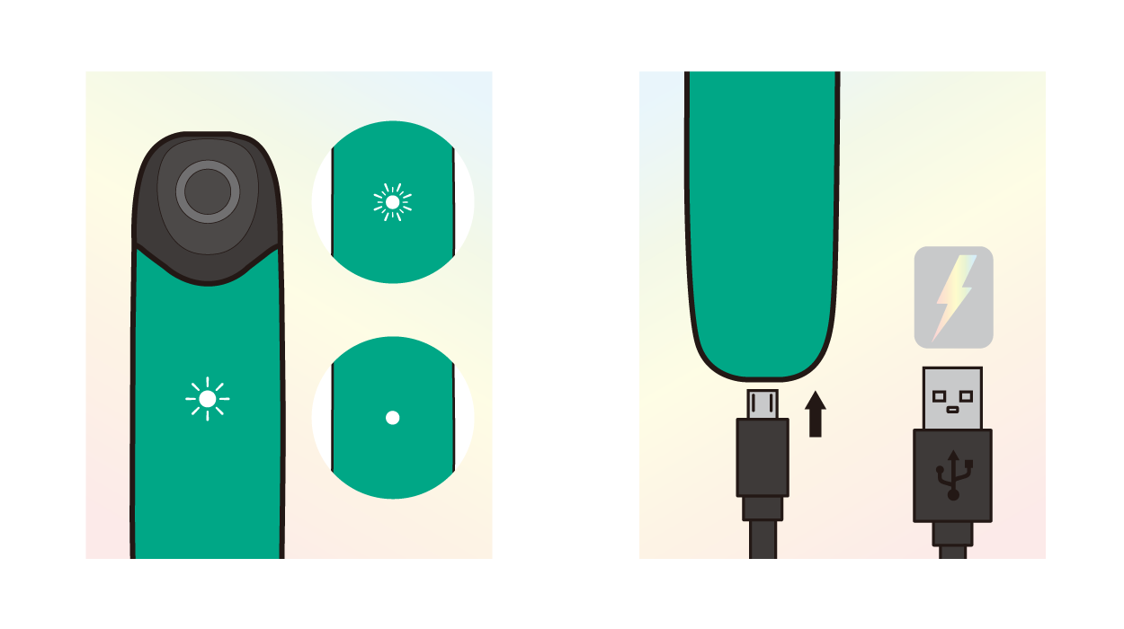 充電中LEDランプ点灯中、消灯状態になると充電は完了です。